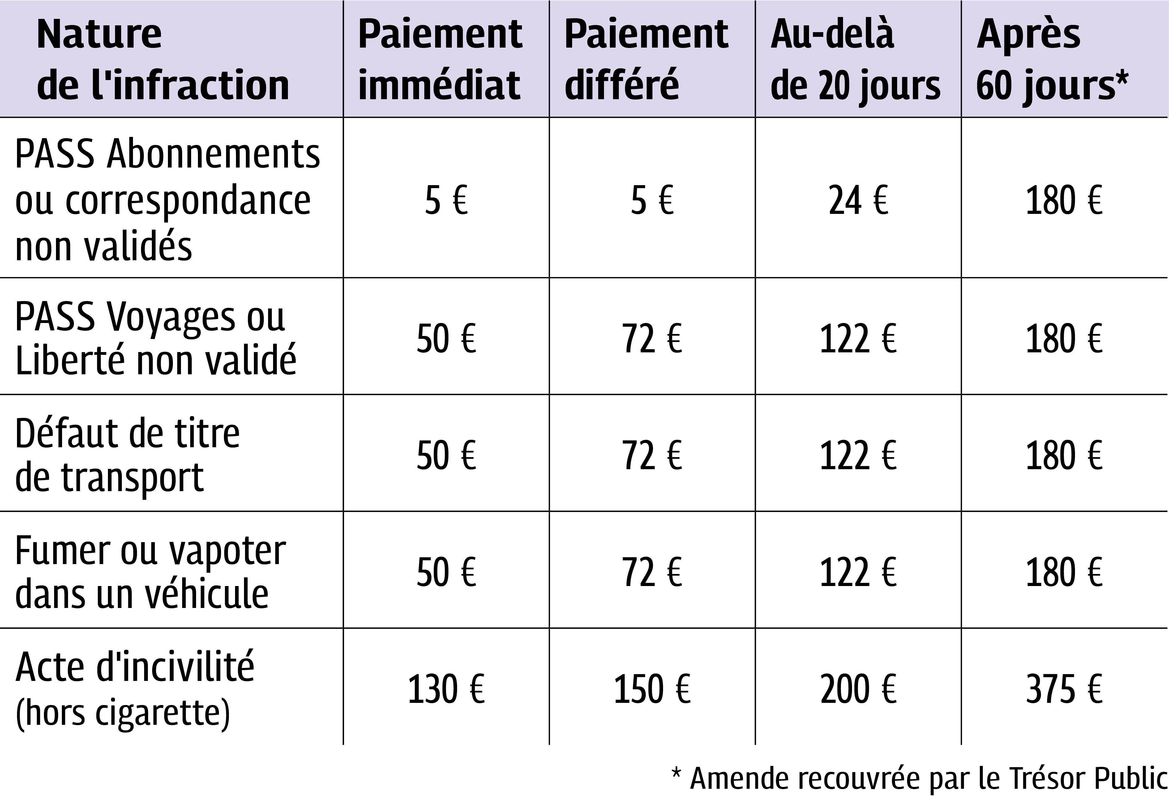 En cas d’infraction, notamment, avec un titre en correspondance ou un PASS abonnement non validé, vous vous exposez à être verbalisé.